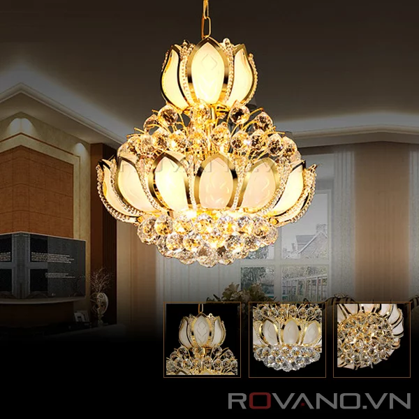 Đèn chùm pha lê RCP-9671/500 là lựa chọn lý tưởng cho những ai muốn tìm kiếm vẻ đẹp mang phong cách Phương Đông cho phòng khách nhà cấp 4 của mình. Với thiết kế tinh xảo, lấy ý tường từ đài hoa sen toát lên sự quý phái. Đèn chùm pha lê RCP-9671/500 không chỉ mang lại ánh sáng rực rỡ mà còn tạo nên vẻ đẹp lộng lẫy cho không gian sống.